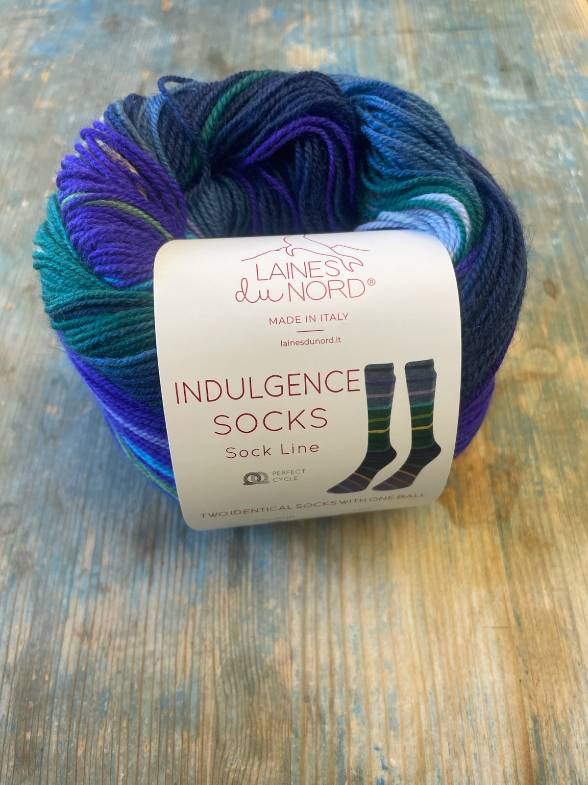 One ball makes one matching pair of average size adult socks in a lovely stripe pattern.